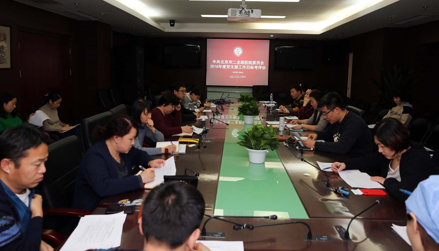 1月8日下午,北京二龙路医院党委在八层会议室召开了2018年度党支部工作目标考评会。会议由党委书记张燕丽主持,党支部书记、支部委员共32人参加了此次会议。