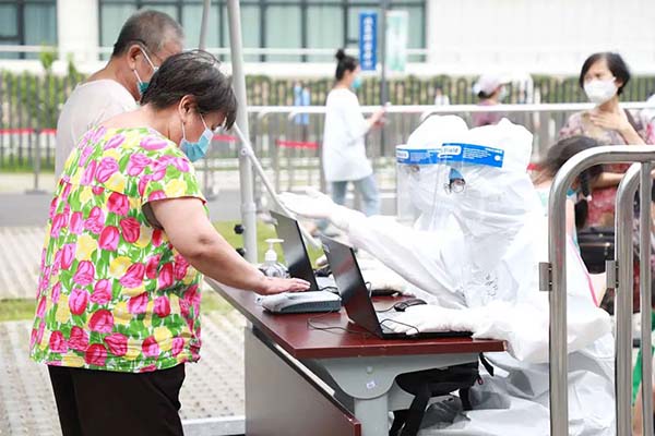 借助智能测温设备,前来参与检测的居民快速完成体温检测。
