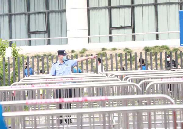保安员严格把守出入口,为检测有序进行献出一份力量。