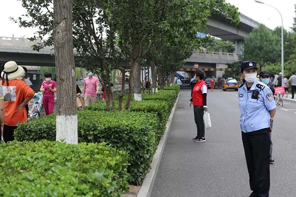 街道机关干部有序指挥,即使太阳再烈,即使风雨再大,都不能影响大家服务的热情。