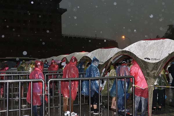 应对降雨天气,检测点迅速行动,搭建遮雨棚,保障检测工作顺利进行。