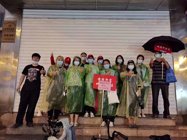 天降大雨,街道工作人员为居民们及时发放雨衣,在遮风挡雨的同时,传递一份温暖心意。