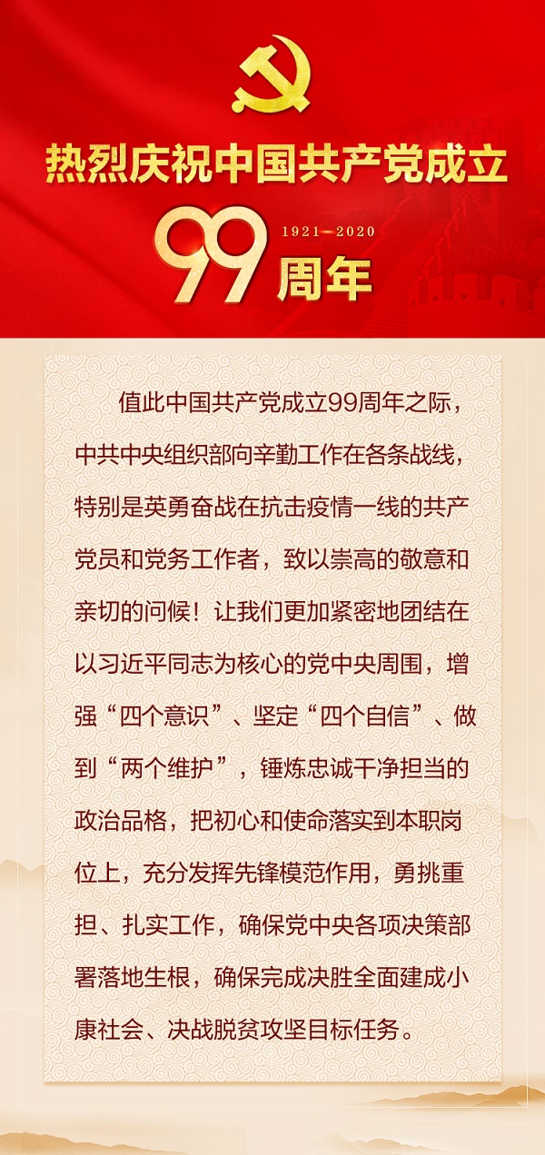 中共中央组织部向全国共产党员和党务工作者致以节日祝贺