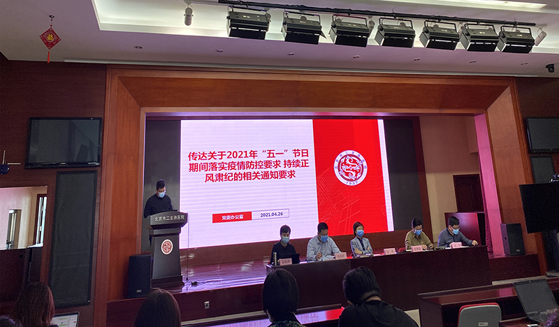 首先,会议传达了北京市二龙路医院《关于2021年“五一”期间廉洁过节的通知》精神,并对“四风”问题自查自纠和节日期间纪律作风督导检查工作进行了安排部署。