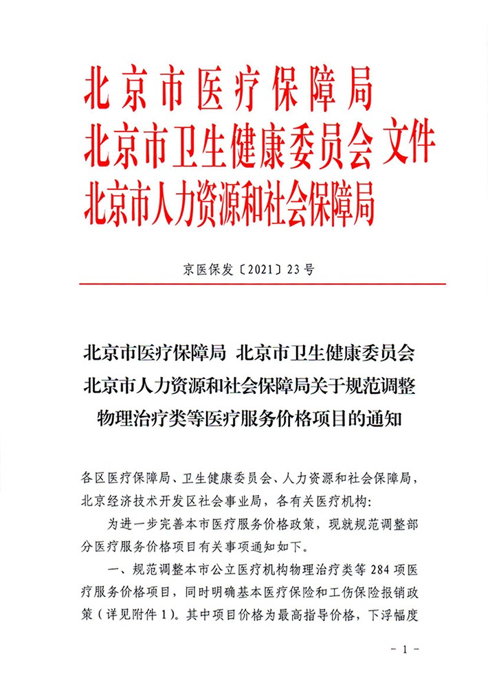 北京市医疗保障局 北京市卫生健康委员会北京市人力资源和社会保障局关于规范调整物理治疗类等医疗服务价格项目的通知