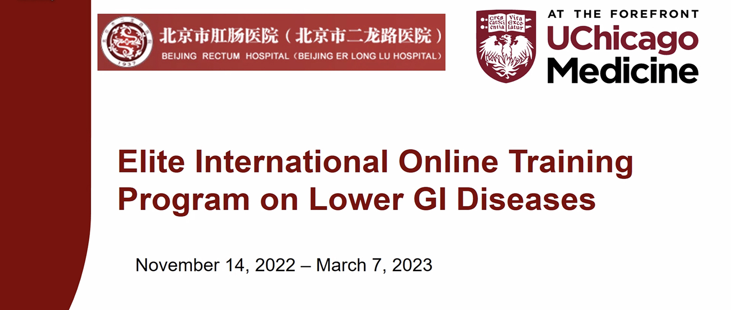 近期,“北京市二龙路医院-芝加哥大学医学中心下消化道疾病在线国际研修项目”开班仪式在线上举行。北京市二龙路医院分管领导、芝加哥大学医学国际课程负责人及北京好医国际医学交流中心负责人参加开班仪式。北京好医国际医学交流中心负责人主持仪式。来自医院不同岗位、不同专业的医疗人员,克服时差汇聚在线上,与芝加哥大学医学中心结直肠外科主任进行了首次学习交流。