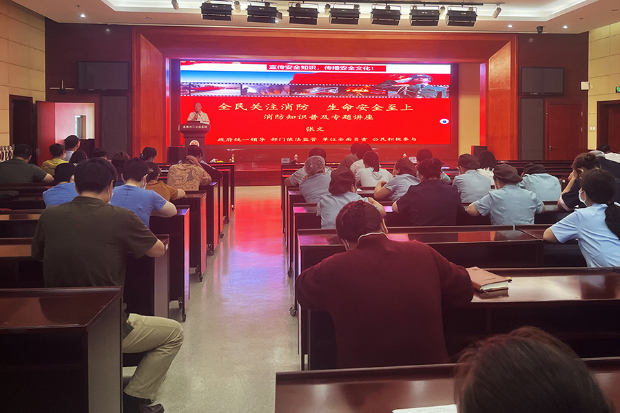 随后安全健康教育网张文教员进行了“人人讲安全、个个会应急--畅通生命通道”主题讲座。张文教员结合近年来火灾事故,尤其是高层建筑火灾、电气火灾、车辆火灾案例,就院内安全隐患如何排查,高温季节防火注意事项,办公室用电安全,电瓶车防火安全,发生重大安全事故时如何紧急疏散人员逃生和医患间互救技巧等方面进行了授课。