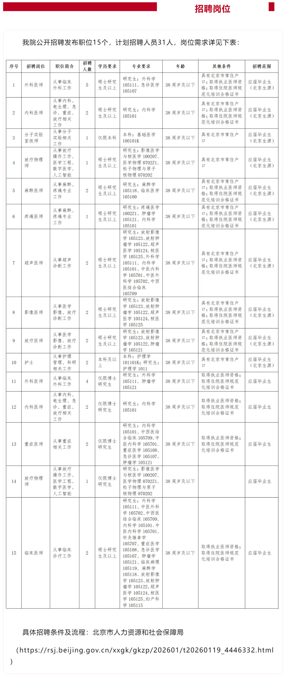 北京市肛肠医院(北京市二龙路医院)2026年第一批公开招聘工作人员公告