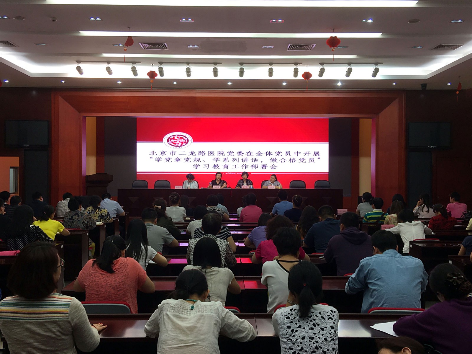 5月27日,北京市二龙路医院党委在全体党员中开展“两学一做”学习教育动员部署会,院长、党委副书记张秀传达中央、全市、全区及区卫生计生工委“两学一做”学习教育会议主要精神,院党委书记张燕丽传达《中共北京市二龙路医院委员会“两学一做”学习教育实施方案》并对全院党员提出要求。全院党员128人参加会议,会议由院党委书记张燕丽主持。督导组成员广外医院党委副书记、纪委书记杨秀娟、宣武中医院宣传科干事刘元媛到会指导。