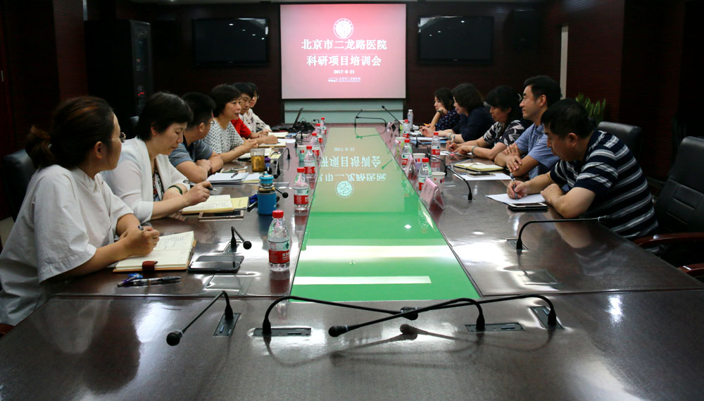 区卫计委及医院领导首先对我院情况、科研能力及拟立项课题做了简要介绍,医院在科研方面具有一定的积累,在可持续发展方面从管理手段有更好的提高和创新,以及管理方案的推广应用。随后我院院长张秀对科研工作及科研重点方向做简要介绍。指出申报项目目的在于通过课题管理,使科研项目更具创新性、可行性;通过课题的实践,使之可制度化、可复制化、可持续化。科信委领导对医院绩效管理模式十分感兴趣,会中我院副院长何金哲就公立医院“驱动型”战略绩效管理体系构建与实践进行汇报,对近几年我院绩效管理开展工作的进展情况做简要总结。科信委领导对可持续发展科研课题的支持范围、创新性、转化能力、社会效益、对区域可持续发展的贡献等进行具体培训与指导。