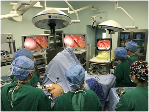 2、内镜辅助腹腔镜手术:适用于体积较大、在黏膜下生长及来源于肌层等内镜下无法切除的良性肿瘤。肿瘤切除主要由腹腔镜完成;内镜起肿瘤精确定位作用,避免腹腔镜下的 “盲目” 操作而造成的额外创伤;切口缝合后,内镜可以再次检查吻合口,明确有无吻合口出血、狭窄等并发症,增加手术安全性。