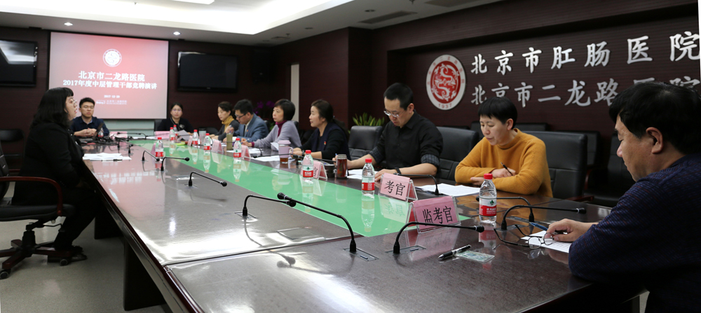 为认真贯彻执行党的干部路线方针和政策,落实全面从严治党、从严管理干部队伍的要求,建立科学规范的管理干部选拔聘任制度,不断推进干部队伍革命化、年轻化、知识化、专业化,建设一支信念坚定、为民服务、勤政务实、敢于担当、清正廉洁的高素质管理干部队伍,保证医院发展建设和各项工作顺利进行,北京市二龙路医院竞争性选拔2017年度中层管理职位人员。按照《党政领导干部选拔任用工作条例》精神和中共北京市西城区委组织部、北京市西城区人力资源和社会保障局关于印发《北京市西城区科级领导干部选拔任用工作办法》的通知,医院党委结合医院工作实际,制定工作方案,明确选拔原则、条件和资格、工作程序,并成立了领导小组。秉着公开、公平、公正的原则对全院72个管理岗位进行公开竞聘。党委要求各科室要认真传达落实工作要求,确保职工的知晓率。全院共有79位同志递交了竞聘材料。通过个人演讲、随机提问考试、综合打分、民主测评、院内公示等环节,最终有66位同志脱颖而出,走上了医院新一轮的管理岗位,其中包括17位首次担任管理岗位的同志。