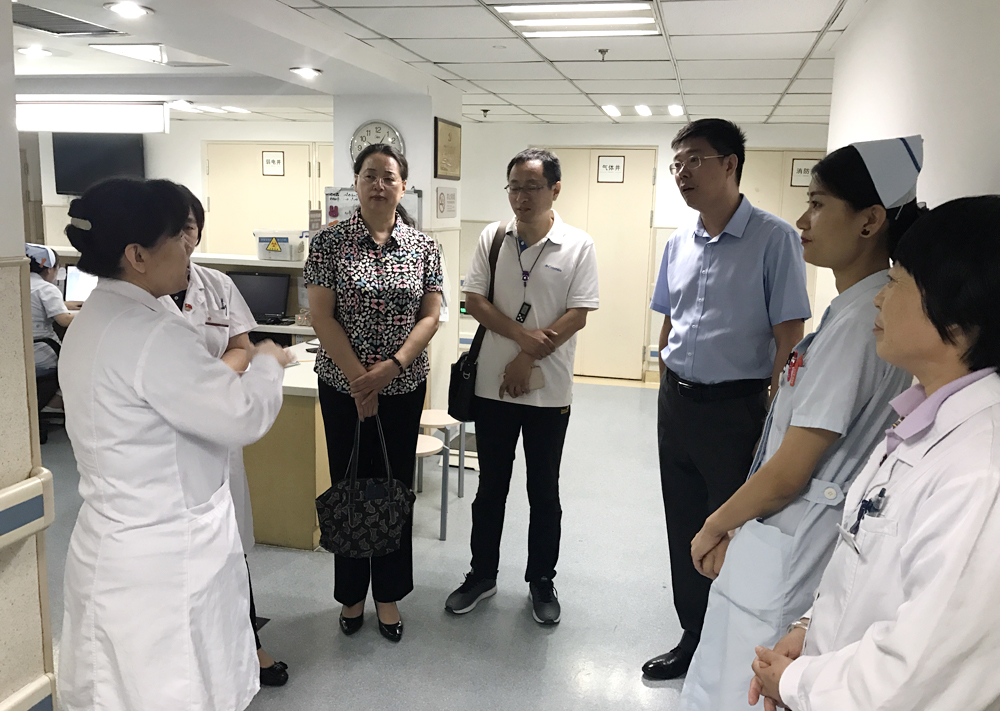 李奕主任一行三人是在西城区卫计委医政科尚勇科长陪同下来到医院的。在我院医务科长的带领下,他们先后参观了内窥镜室、ICU、远程会诊教室、结直肠外科(二)病区,了解了各科室情况,并对特色诊疗技术进行了重点考察。