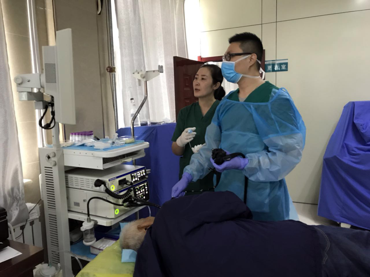 高旭东医生业务水平精湛。过去的三周,他已经参与了所在中蒙医院的多项技术指导工作:在内镜室指导当地医生进行胃镜、结肠镜检查操作,指导镜下的放大与染色观察,指导镜下治疗等;在内科门诊对患者进行耐心诊治;参与院内疑难病例讨论,提出专业建议;等等。截至9月7日,累计接诊患者160余人次,院内会诊3次,疑难病例讨论2次,收住院患者3人次,指导手术50人次。