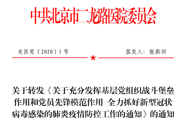 中共北京市二龙路医院委员会向全体党员发布“守初 心、担使命、抗肺炎、战疫情”的号召