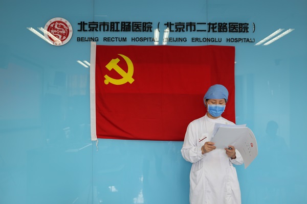 这是二龙路医院肛外二党支部贾方芳《入党志愿书》中的一段话,作为一名积极向党组织靠拢的积极分子,她第一时间提交《请战书》,主动报名到疫情防控一线工作,大年初三就奔赴西城区第一医学观察点。