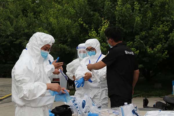检测工作有序推进,检测人员连续奋战,动作却更加熟练,他们也从“白衣天使”变成了“白衣战士”。