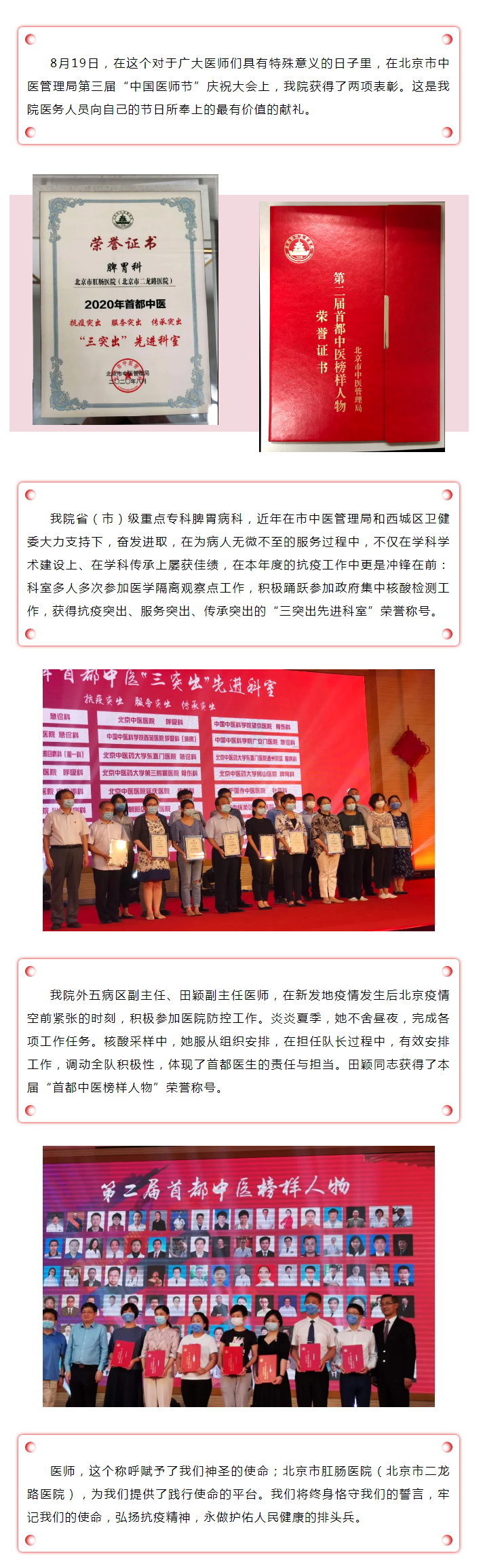 新闻信息|我院在北京市中医管理局医师节庆祝大会上获得表彰