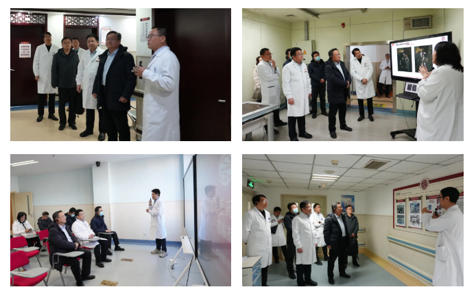 王停副校长一行进行了实地考察,医院同志随行汇报了医院重点专科建设、临床教学特色资源以及开展教学的基础情况,介绍了医院肿瘤中心学科建设情况和初步成果,以及绩效管理与数字化转型探索实践。