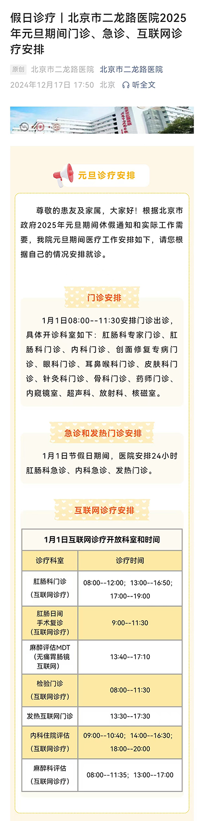 上一篇 通知|2025年1月1日起,我院停用北京市医疗收费纸质票据