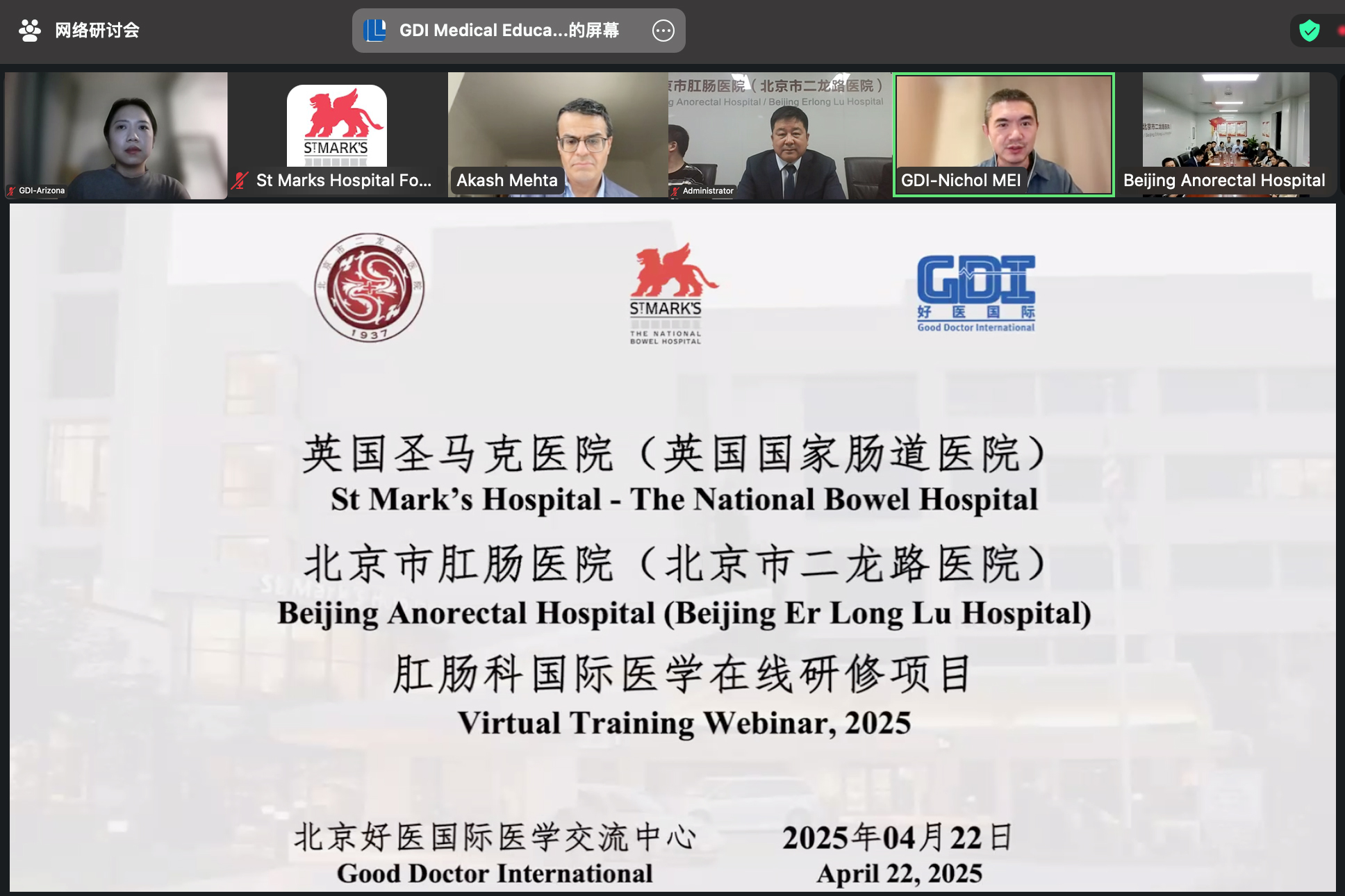 按照医院国际化发展战略规划,为深化国际医疗合作,拓展医务人员国际化视野,推动学科高质量发展,北京市肛肠医院组织出国研修系列培训项目。4月22日,“北京市肛肠医院与英国圣马克医院肛肠科国际医学在线研修项目”正式开班。