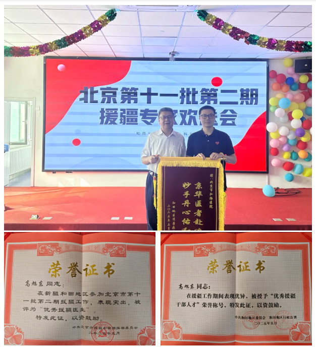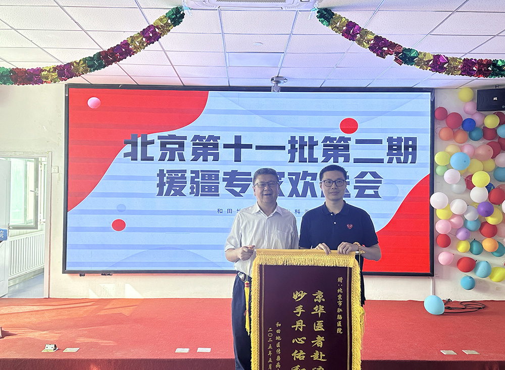 北京市肛肠医院始终秉承“大医精诚、服务为民”的宗旨,积极响应北京市援疆号召,选派骨干力量投身边疆医疗事业。2024年5月,医院内科高旭东医生作为北京市第十一批第二期援疆医疗队成员,赴新疆和田地区传染病专科医院开展对口支援。经过一年的扎实工作,高旭东医生圆满完成援疆任务并通过考核,于2025年5月25日顺利返京。其援疆工作获北京援疆指挥部及和田地区行署高度认可,被授予“优秀援疆干部人才”称号。