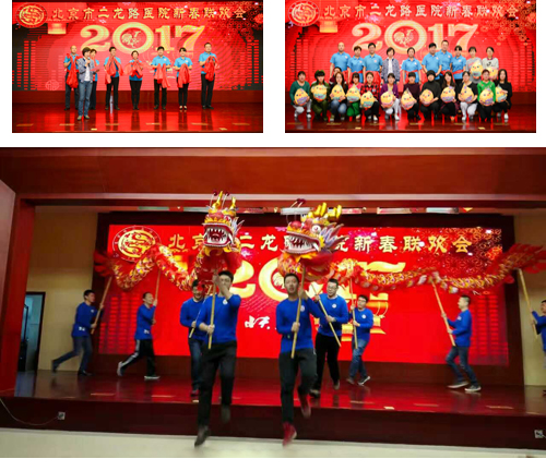 首先是领导班子表演了东北秧歌并进行大拜年,还为本命年职工送去吉祥物,在张秀院长的新年贺词中为全体在场人员派发了新年礼物,节目设定更是充分发挥职工的个人优势和带头作用,不限题材,激发出了职工们的热情。《小人舞》、《hot pink》、《咏荷》、《闪闪红星》、《北京北京我的家》、《大王派我来寻山》等节目带着观众们领略了不同的风情,小品《相亲相爱一家人》和相声《打灯谜》笑点不断,却也引人深思,传递了满满的正能量。工会为促进医院文化建设,不断营造团结、和谐的文化氛围,同时不断加深职工对医院文化及相关业务知识的了解,在联欢会中间穿插3次的知识竞答板块,将联欢会推向高潮!联欢会以一曲《闪闪的红星》完满落幕!