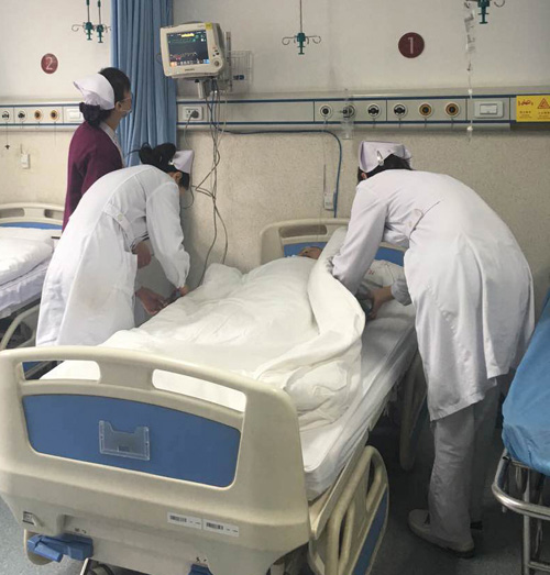 “来人啊,有人摔倒了,快救人啊!!”2017年5月2日上午9时,医院内窥镜中心门外一声急迫的呼唤打破了医护人员有序的忙碌!正在耐心解答患者疑问的李英茹、薛瑶函医生立即赶往现场,发现一位老人孤身一人躺倒在地全无意识,时间就是生命,现场医护人员立即启动院内应急预案,心内科、内窥镜中心等多科积极协作,争分夺秒进入抢救状态,各科的医师围着患者紧张的操作,积极、果断、没有一句多余的话,都紧紧抓住一丝希望,尽了自己百分之一百的努力!时钟的滴答声中,老人的意识逐渐恢复,生命体征相对平稳,在判断老人并无大碍后,医护们一颗颗紧张的心才逐渐放了下来。