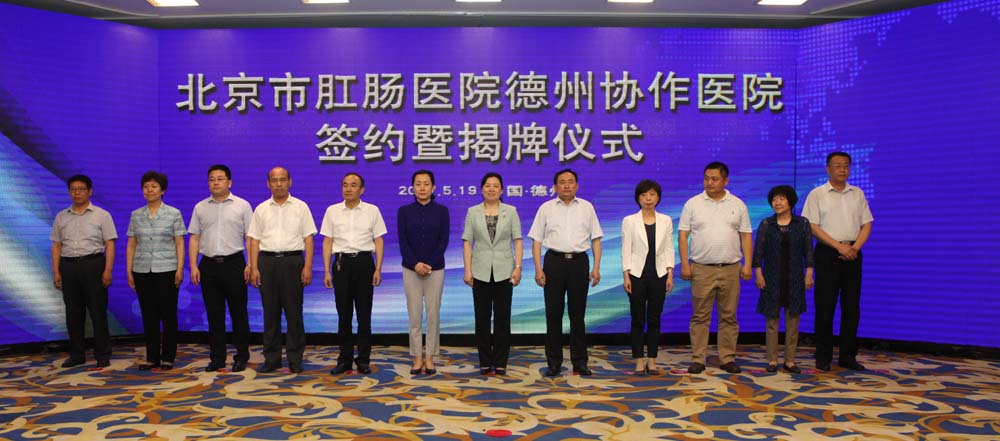 5月19日,北京市肛肠医院与德州市德城区肛肠医院在德州市举行了“北京市肛肠医院德州协作医院”签约暨揭牌仪式。“北京市肛肠医院德州协作医院”是依托北京市中医管理局疑难病会诊中心建设项目平台、在北京中西医结合学会的指导下,北京市肛肠医院充分发挥中西医结合特色优势,积极探索跨区域分级诊疗建设工作的有益尝试。此次合作是两地政府落实京津冀协同发展任务的重要举措,是两地卫生行政部门进行优势卫生资源的共享和对接的大胆探索。