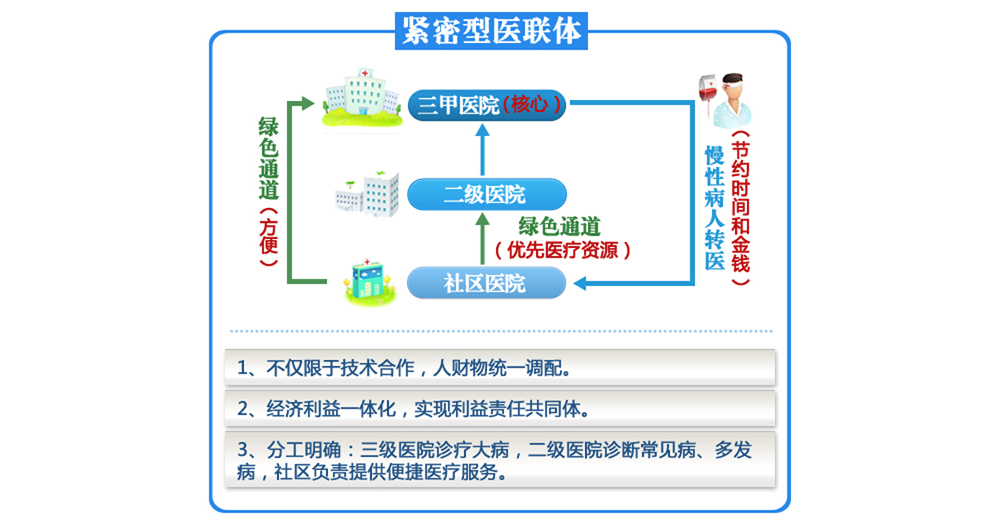 所谓分级诊疗,简单说就是根据疾病的种类和严重程度,该去哪儿治去哪儿治,别一窝蜂扎到大医院、名医院。那么,老百姓怎么可能知道这些疾病分类和分级的知识呢?!所以这就需要医院之间的一个分工和会诊合作机制,由专业的医生判断病人该在哪里治,这样就方便了病人,节约了费用,理顺了秩序。这个分工合作的机制是什么,怎么建?医联体应运而生。