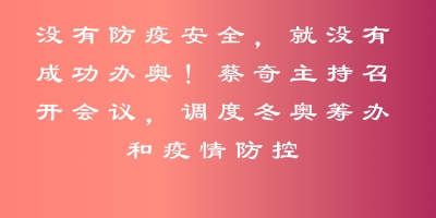 8月27日下午,北京冬奥组委暨城市运行保障指挥部第八次调度会议、北京新冠肺炎疫情防控工作领导小组第一百二十次会议暨首都严格进京管理联防联控协调机制第七十一次会议召开,研究调度冬奥筹办…
