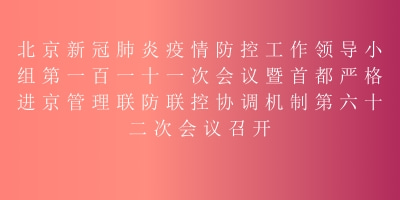 昨天下午,北京新冠肺炎疫情防控工作领导小组第一百一十一次会议暨首都严格进京管理联防联控协调机制第六十二次会议召开,研究调度疫情处置和暑期疫情防控工作。市委书记、防控工作领导小组组…